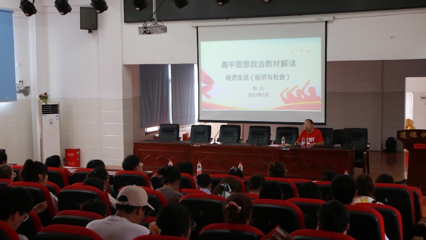 6月8日下午2:00,高中政治教材解读—--经济生活主题讲座在娄底六中举行,主讲人为郭众。参加本次讲座的有谢科峰老师、张得才老师和KY官网18级19级全体学生。在讲座中,主讲人通过讲解经济生活这一内容来讲述新旧高中教材的变化,其中新教材更加突显中国共产党的领导,同时结合这一变化向KY官网学子讲述教师资格证面试相关的技巧等。此外,他还提到古田会议是一场“思想建党,政治建军”的会议,并以此来勉励在场的学生坚定信念,筑牢使命担当。最后,讲座在一片掌声中圆满结束。