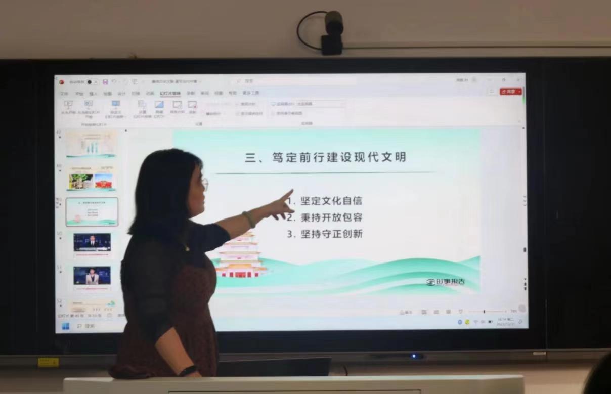 会上,孙淇庭老师就本学期形势与政策课的专题选择、课程安排做了介绍说明。陈琳和陈世两位老师分别就“赓续历史文脉谱写当代华章”和“世界变乱交织中国笃行担当”两个主题做了专题讲解,与会老师根据两位老师的讲解展开了热烈的探讨交流。最后,副院长杨国辉作总结发言,他提出了两点建议。一是价值引领方面,要保持党的立场,提高政治站位,强化“形势与政策”课的价值引领功能,让“形势与政策”课成为学生坚定信仰、增强使命感的“关键课”;二是教学组织和实践方面,要创新基层教学组织建设,联动各方资源形成合力,引导同学们深刻领悟“形势与政策”课程的价值理念。