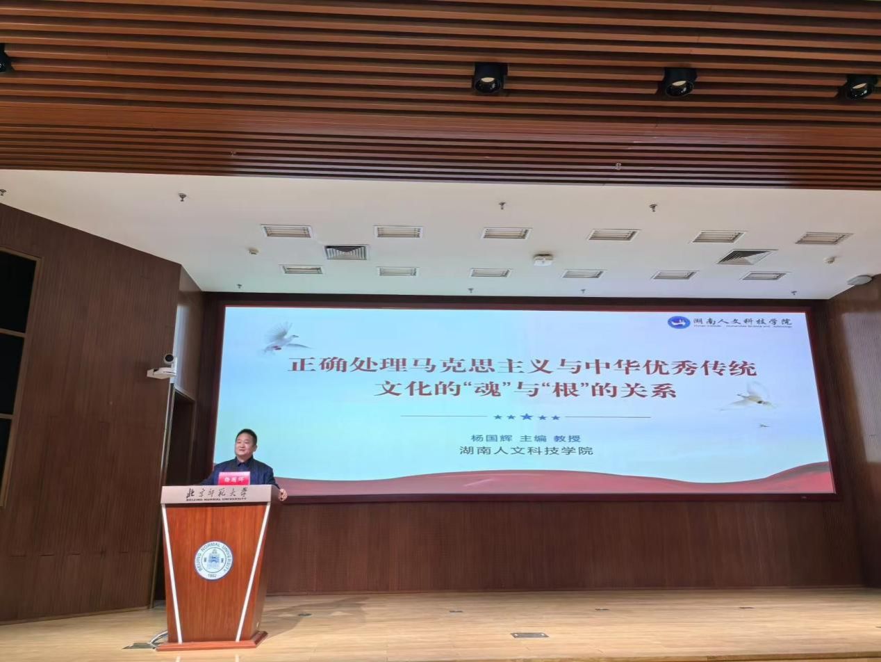 1月4日,“马克思主义基本原理与中华优秀传统文化相结合:历史、理论与实践”研讨会在北京师范大学召开。学校学报编辑部主任、学院专任教师杨国辉教授受邀参会,并作了题为《正确处理马克思主义与中华优秀传统文化的“魂”与“根”的关系》的专题报告。