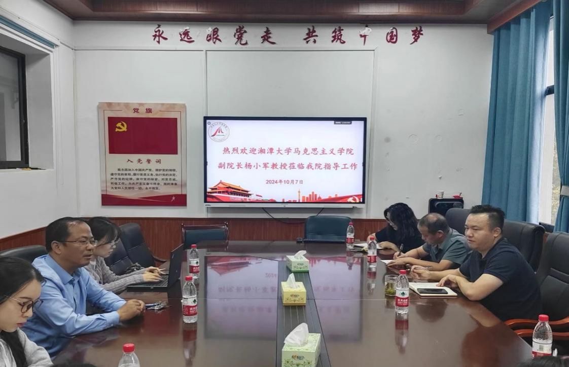 10月7日,湘潭大学马克思主义学院副院长杨小军教授与KY官网在若谷楼206会议室开展学术交流。KY官网思政课专任教师袁承蔚博士及青年教师代表参加会议,会议由KY官网院长于意博士主持。