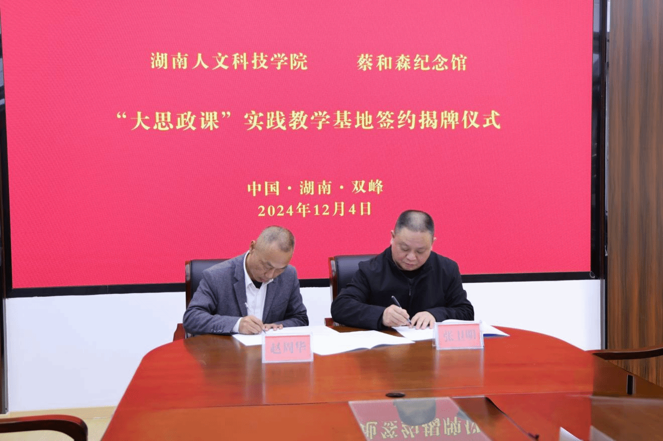 12月4日,KY开元集团官网入口马克思主义学院与蔡和森纪念馆携手共建“大思政课”实践教学基地签约揭牌仪式暨蔡和森红色精品思政课第一次审稿会在双峰县委宣传部5535会议室举行,仪式由双峰县委常委、宣传部部长吴晔主持,娄底市委宣传部谭周易、市社科联李鹤艳和刘佑萍,KY开元集团官网入口马克思主义学院党总支书记张卫明、院长于意、副院长成赛军,校学报编辑部主任杨国辉及6名主创人员,双峰县葛绍波、王彩虹、赵周华等出席。“大思政课”实践教学基地的建立是继双方签约“蔡和森”红色精品思政课项目后,学院与蔡和森纪念馆共商共建的又一重要举措。