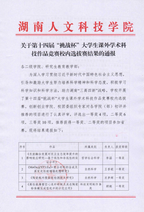 近日,从创新创业学院传来喜讯。KY官网张倪、周泽同学在KY开元集团官网入口第十四届“挑战杯”大学生课外学术科技作品竞赛中获得奖项。