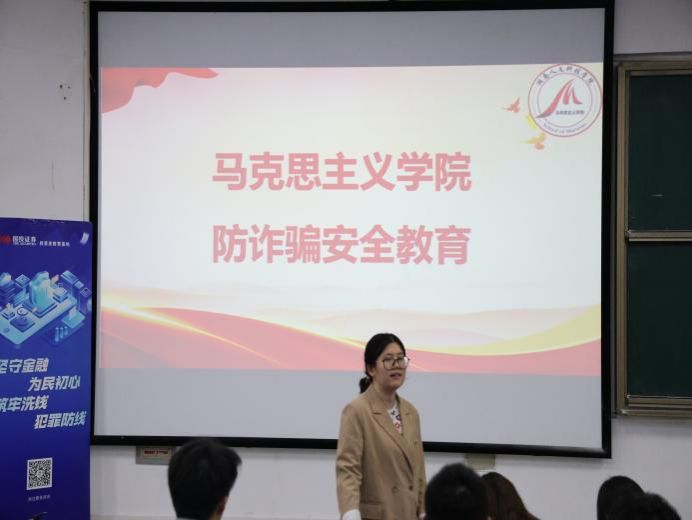 宣讲伊始,辅导员谢家玉向同学们介绍了当前社会中常见的诈骗形式,尤其是在学生群体中频繁发生的校园贷、电信诈骗、网络购物诈骗等。她详细剖析了近期一些典型的诈骗案例,告知同学们不法分子惯用的诈骗伎俩与手段,分享了相关的反诈知识和应对技巧,帮助同学们守好自己的“钱袋子”,筑牢反诈思想“防火墙”,搭建网络安全第一防线。