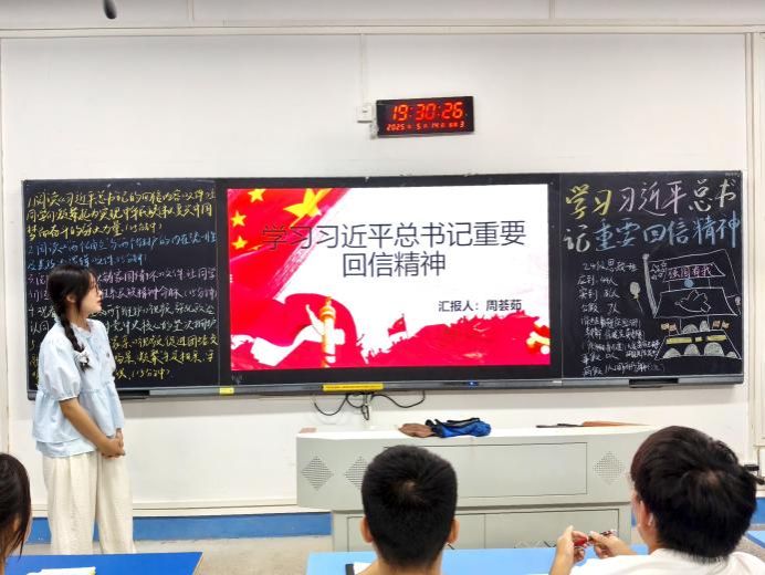 5月14日晚,马克思主义学院2024级全体学生于若谷楼分班开展“学习习近平总书记重要回信精神”主题团课。