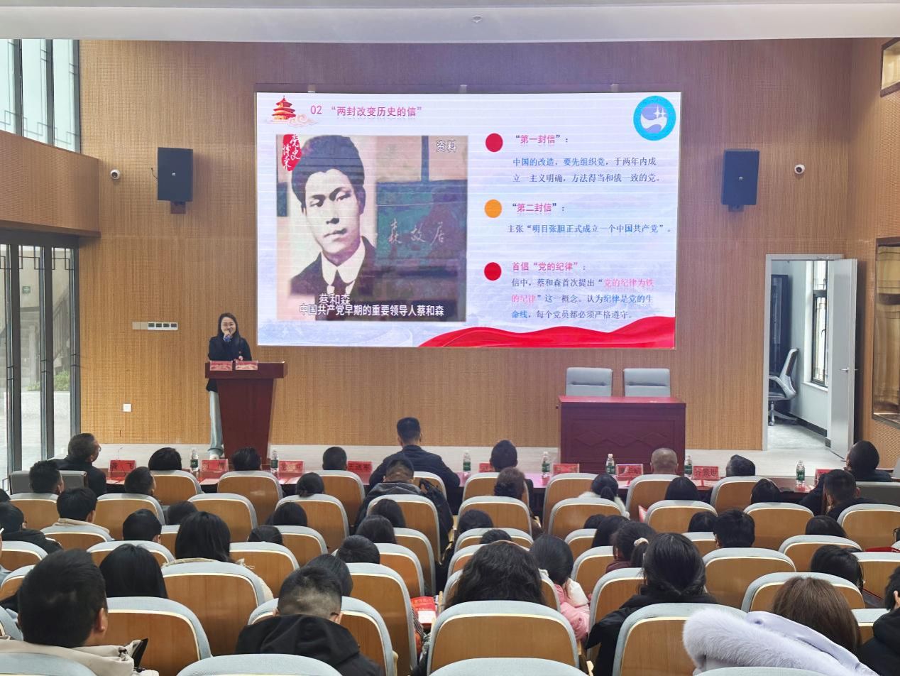启动仪式后,展演活动正式开始。马克思主义学院师生代表张娟、李婉溶、刘莎、李佩芬、谭思雨、黄如分别在双峰大讲堂及蔡和森故居研学中心讲授了面向党员干部与青少年群体的6堂红色思政课,吸引近千名党员干部、师生代表及群众参与。沉浸式的红色思政课体验不仅让参与者深刻感受到蔡和森同志的崇高品格,更对地方的文化传承、思想建设以及人才培养提供了强大的精神动力。