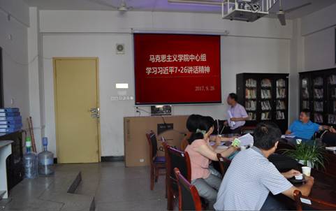 为了更好的贯彻落实习近平7·26讲话内容,2017年9月18日,KY官网组织开展学习习近平7·26讲话精神重要会议,党总支书记游训龙出席此会议并发表讲话,副院长杨国辉以及中心组人员参与讨论。