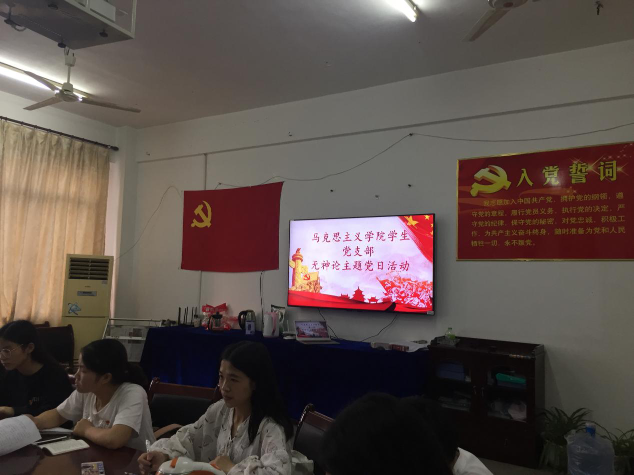 5月26日,学生党支部“做坚定的马克思主义无神论者”的主题党日活动在致远楼516开展。