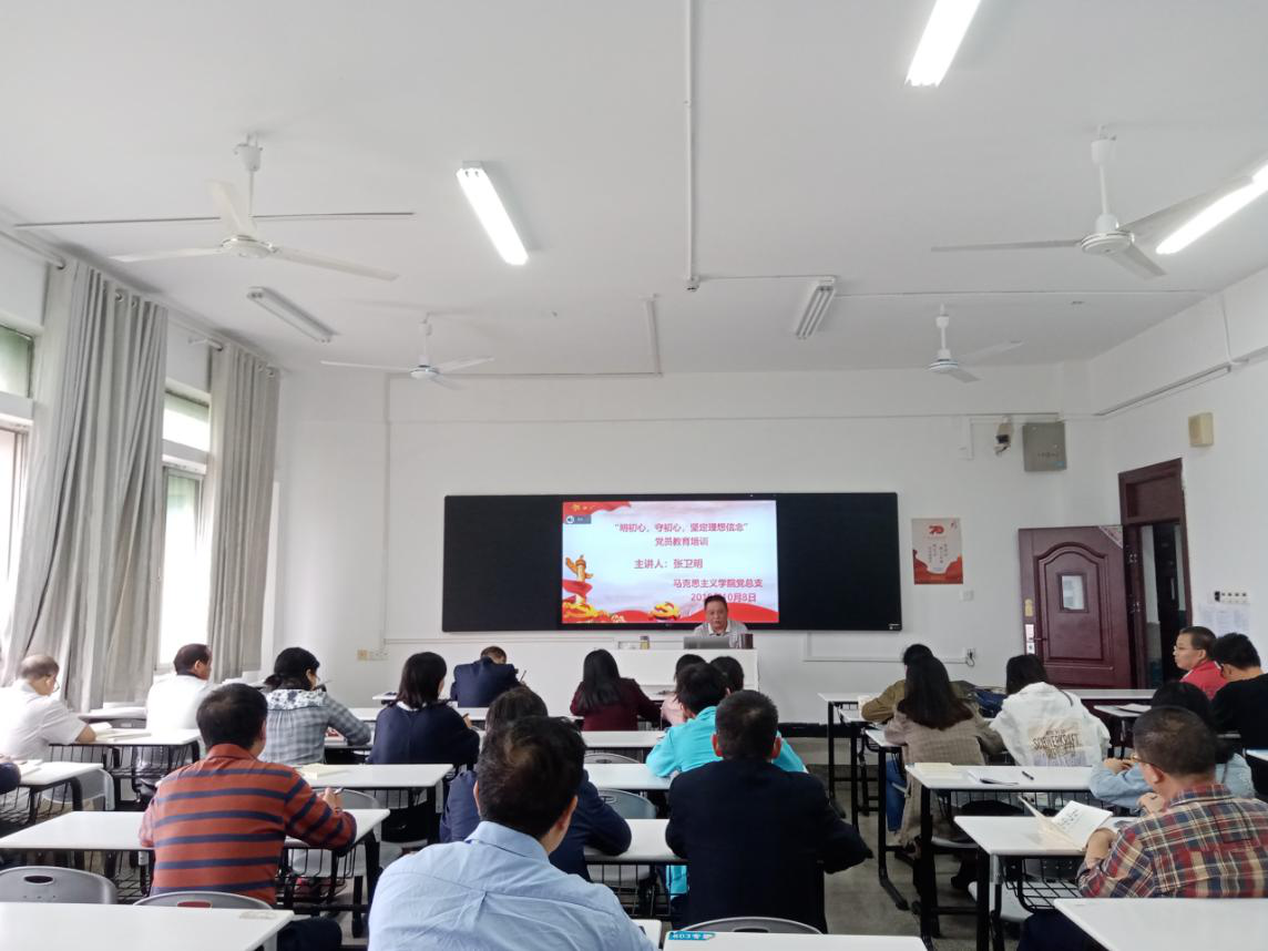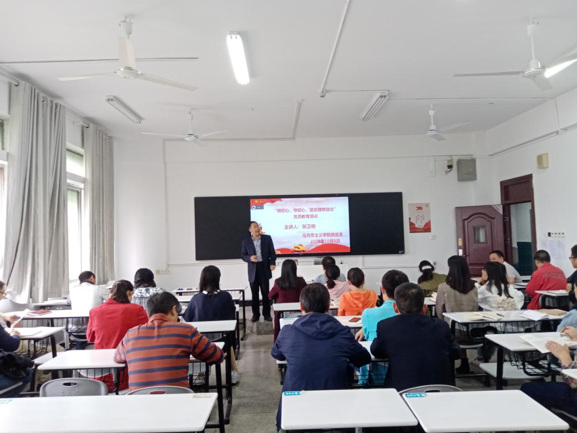 游训龙介绍了此次党员教育培训的必要性。他说,“明初心,守初心,坚定理想信念”党员教育培训是落实党中央,省委和学校“不忘初心、牢记使命”主题教育的重要环节。