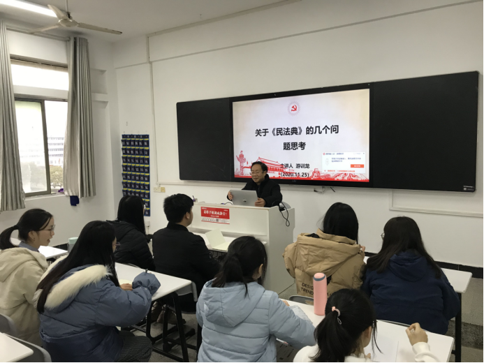 为培养学生党员法治思维,营造学习宣传《民法典》的良好氛围。11月25日下午2:30分,KY官网党总支书记游训龙教授在致远楼604教室给全体学生党员上了一堂题为“关于《民法典》的几个问题思考”的党课。