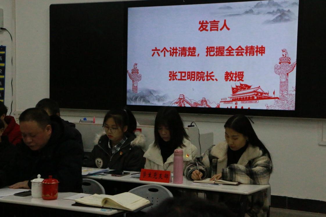 为深入学习贯彻十九届五中全会精神,12月13日晚,马克思主义学院在致远楼604教室举办十九届五中全会研讨会。马克思主义学院党总支书记游训龙、院长张卫明教授、副院长杨国辉博士、党总支副书记成伟以及马克思主义学院教工党支部、学生党支部全体成员、青马工程(骨干)培训班学员代表、娄底日报社记者代表共同参与,研讨会由游训龙教授主持。