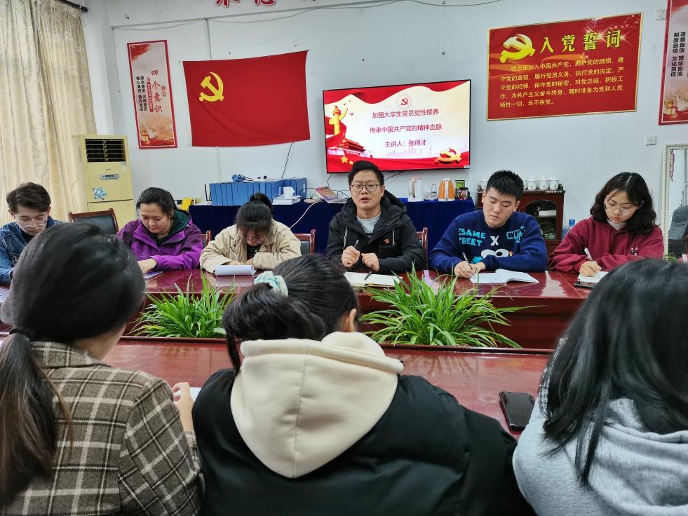 活动伊始,张得才带领全体学生党员认真学习了党史。紧接着,就中国共产党为什么“能”、马克思主义为什么“行”、中国特色社会主义为什么“好”三个方面进行细致讲解。最后,他从具体的事例入手,语重心长地告诫我们学生党员应当懂得“学史明理、学史增信、学史崇德、学史力行”,以昂扬姿态奋力开启全面建设社会主义现代化国家新征程,以优异成绩迎接建党一百周年。