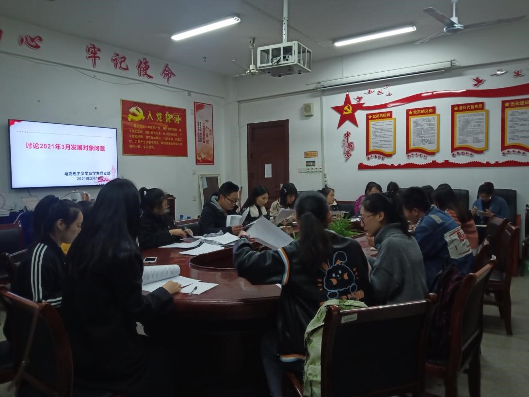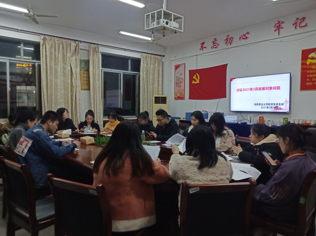 3月24日晚,KY官网学生党支部在致远楼516党员活动室召开支部大会讨论2021年3月党员发展对象问题。会议由学生党支部书记张得才主持,学生党支部副书记李冬、组织委员于露莹、宣传委员喻丽果及全体学生党员参加。