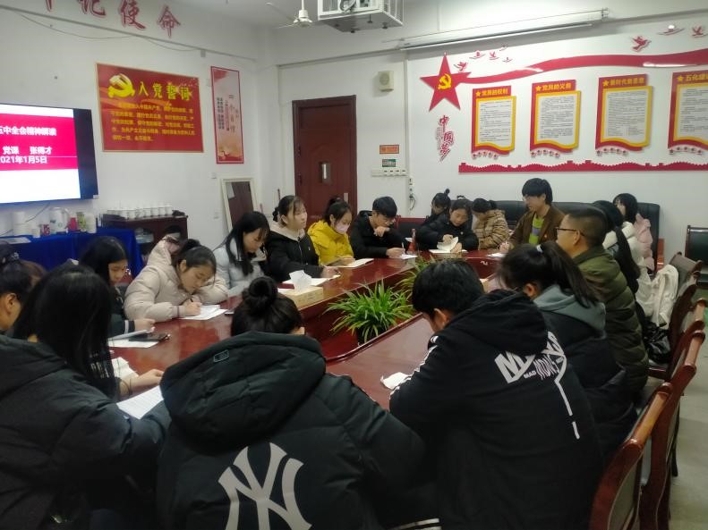 1月6日七点半,为贯彻落实党的十九届五中全会精神,激发学生党员活力,充分发挥学生党员的先锋模范作用,全面推进马克思主义学院风貌的提升。学生党支部书记张得才在致远楼516给全体学生党员上了一堂以“十九届五中全会精神解读”为主题的党课。