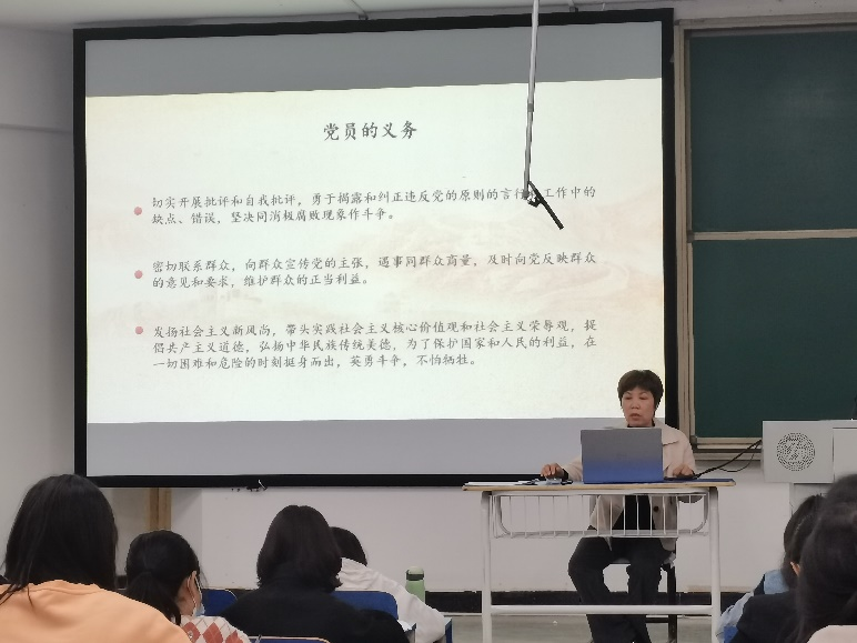 课上,李书记从党员的权利与党员的义务两个方面展开讲述,分别对其进行了详细地讲解。李书记强调,每一位党员在履行党员义务的同时,也要正确行使自己的权利,并提出要辩证统一地认识党员的权利和义务。最后,李书记倡议在场的入党积极分子都要与时俱进,积极学习党的先进思想理念,并贯彻落实到学习生活当中,不仅要在组织上入党,还要在思想和行动上入党。
