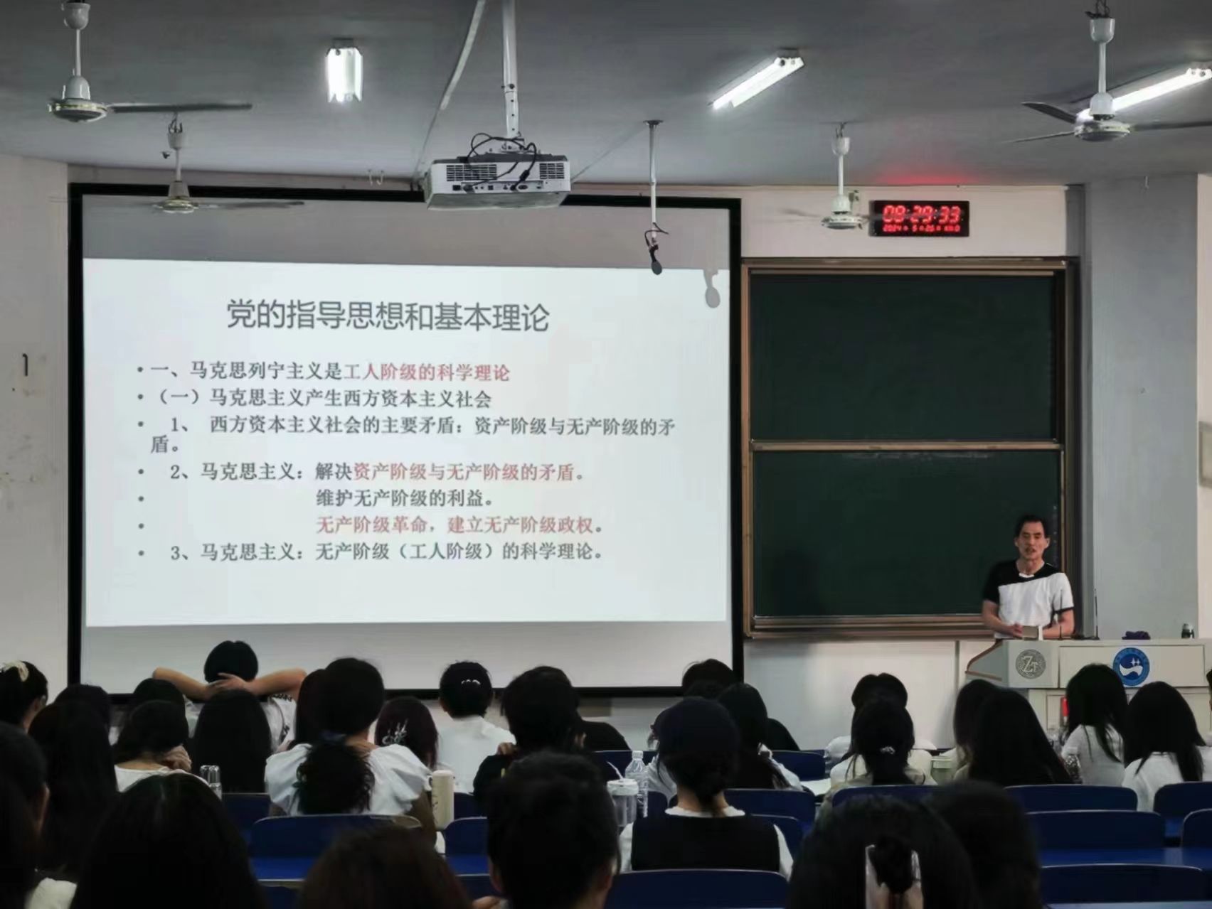 此次培训马克思主义学院分党校将“一月一课一片一实践”主题教育和党纪学习教育主题活动相结合,共组织《党章党规党纪》《端正入党动机,以实际行动争取早日入党》《党员的权利和义务》《党的指导思想、基本理论》《党的基本路线、基本方略、基本知识》《社会主义核心价值观》六次专题授课。培训过程中学员们专心听讲、认真记录、积极反馈,展现了积极分子们的良好风貌。