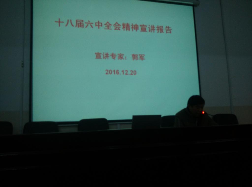 为学习贯彻党的十八届六中全会精神,12月20日下午,学校党委书记郭军同志为KY官网师生党员上专题党课。他讲的主要内容有:一、关于十八届六中全会的重大意义;二、关于全面加强和规范党内政治生活;三、关于全面落实党内监督责任;四、关于突出抓好领导干部特别是高级领导干部;五、关于抓好十八届六中全会精神的学习贯彻。郭书记的讲课,既讲述了十八届六中全会精神实质,又注重理论联系实际,使KY官网师生党员深受启发,受益匪浅。