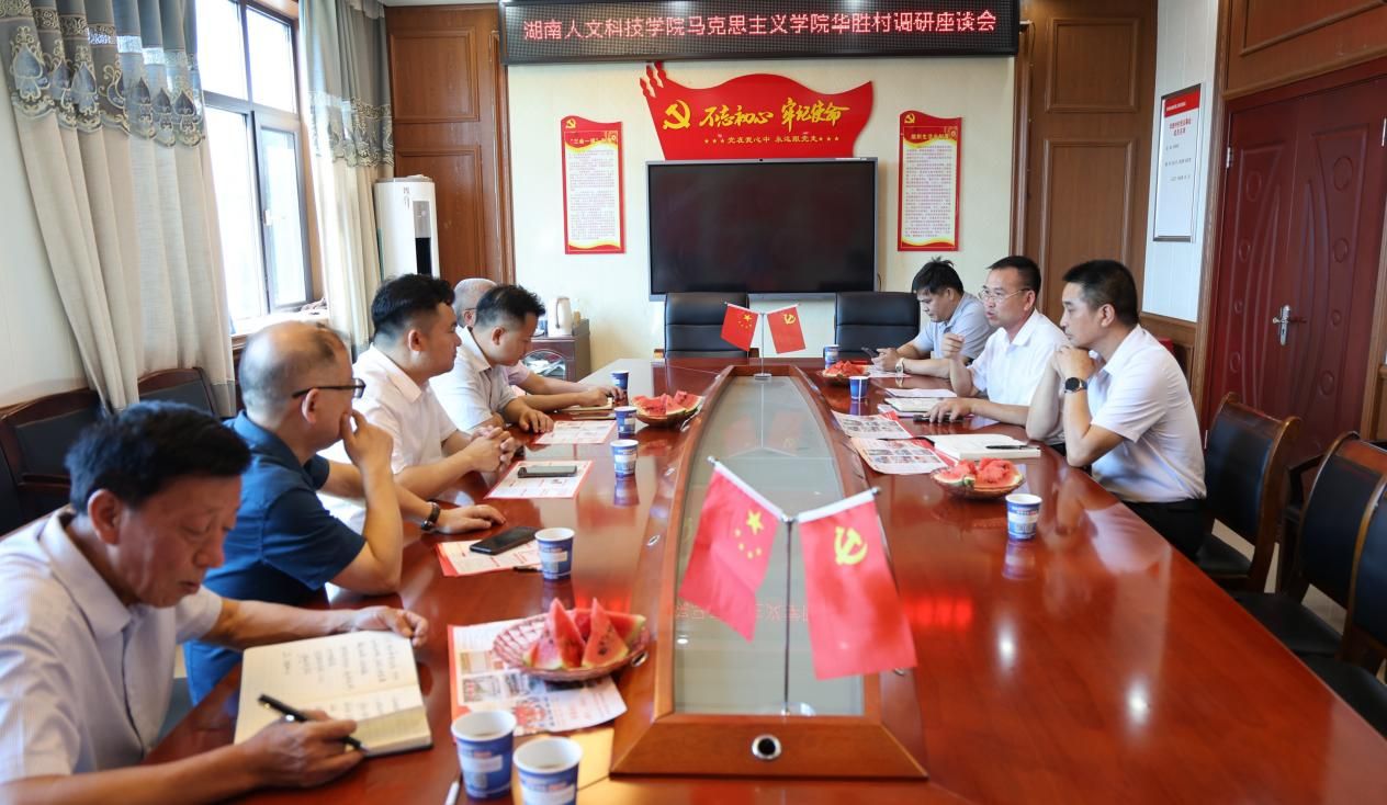 7月21日,KY官网参加娄底经开区华胜村乡村振兴调研座谈会。科研与社会服务处处长刘海力、马克思主义学院院长于意、副院长成赛军、陈灿芬教授,娄底经开区驻华胜村一支书朱先锋、华胜村党支部书记陈小文、乡贤理事会会长曹剑以及相关村干部出席会议。