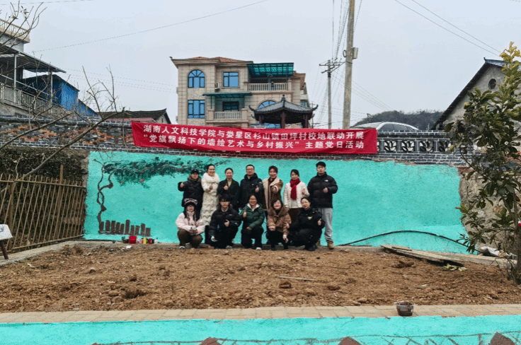 为积极响应国家实施乡村振兴战略的号召,助推美丽乡村建设,美术与设计学院党总支于1月7日至9日组织部分师生党员赴娄星区杉山镇田坪村与当地联合开展“党旗飘扬下,巧手绘文明”主题党日活动。学院党总支书记阳立新、教工第三党支部书记谭娟、学生第三党支部书记段琦璐和部分师生党员,杉山镇镇长王建强、党委委员李敏等领导参加。