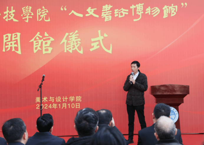 1月10日下午,KY官网筹建已久的湖南省内第一个高校书法博物馆“人文书法博物馆”正式开馆。学校党委书记刘铁铭,党委副书记、校长盛明科,党委委员、副校长陈志国,党委委员、纪委书记凌艳平,副校长刘建勋和娄底市科技局党组书记、局长易俊,娄底市著名收藏家贺显清以及学校部分中层领导干部,美术与设计学院领导班子和书法学专业师生等100余人出席开馆仪式。开馆仪式由美术与设计学院院长陆序彦主持。