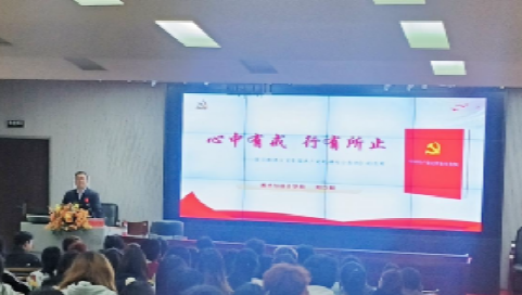 美术与设计学院党总支书记阳立新以“心中有戒 行有所止”为题为预备党员们讲授党课。阳立新以通俗易懂的方式深入剖析了《中国共产党纪律处分条例》,使条例内容深入人心。他强调,作为一名党员,必须对《中国共产党纪律处分条例》的精神和内容引起高度重视,审视其在党员教育和行为规范中的重要作用。本堂党课融汇理论与实践,不仅提升了预备党员们的理论素养,还加深了他们对党忠诚的信仰,激发了他们坚定理想信念的热情。