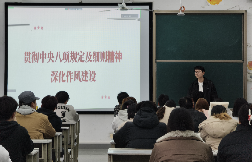 3月28日,为深入学习贯彻习近平总书记关于作风建设的重要论述,进一步贯彻落实中央八项规定及其实施细则精神,美术与设计学院召开了全体学生党员大会暨深入贯彻中央八项规定精神学习教育启动部署会。此次会议由学院党总支组织委员、专职组织员柳泽伟老师主持,学院全体学生党员参加了会议。