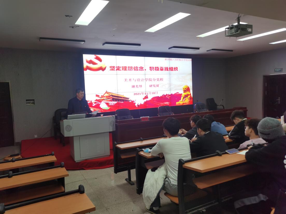 为进一步加强党史学习教育,把好党员发展“入口关”,近日,美术与设计学院分党校在逸美楼报告厅举行第30期入党积极集中培训,74名入党积极分子参加本次培训.