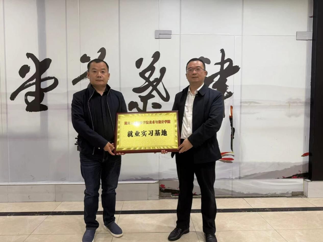 2024年10月29日,阳光明媚,秋风送爽。美术与设计学院党总支书记阳立新、副书记黄庆源、书法学教研室主任李国清以及辅导员段琦璐老师一行,应邀前往长沙肆叶草堂培训学校,签订了就业实习协议,并举行了基地挂牌仪式。