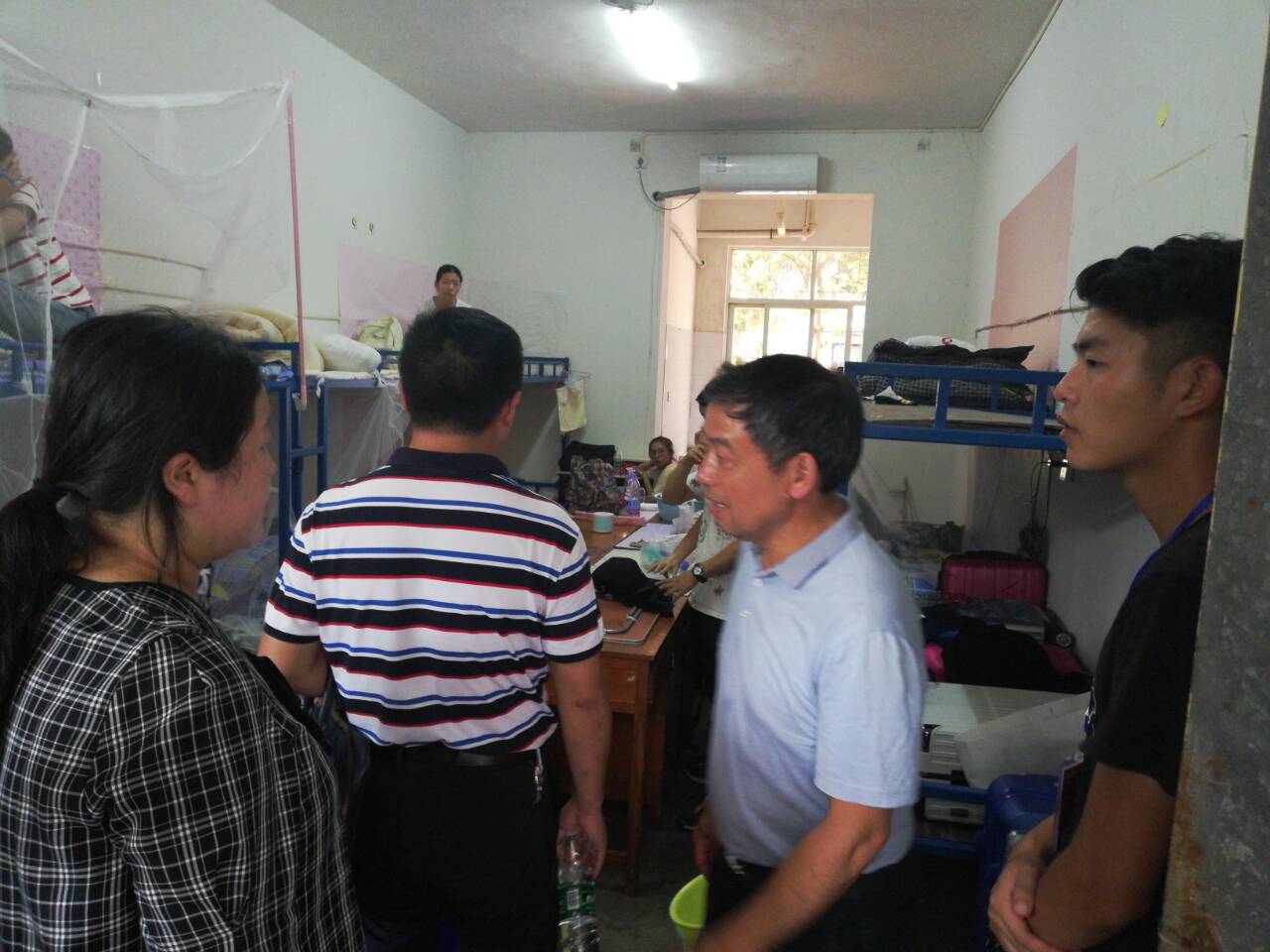 9月8日下午三时,烈日炎炎,美术与设计学院今年迎新工作接近尾声。KY官网领导心系新生,院党总支书记谢光绎、党总支副书记易俊及全体辅导员对新生宿舍逐一走访。