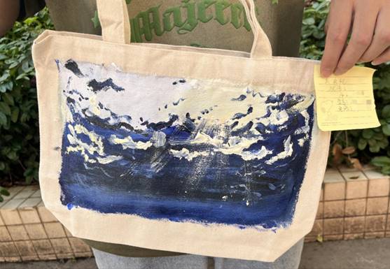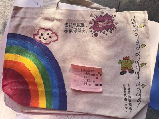 现场气氛热烈,同学们非常高兴地将自己的作品穿在、背在身上,时刻提醒自己青年大学生的重要使命。