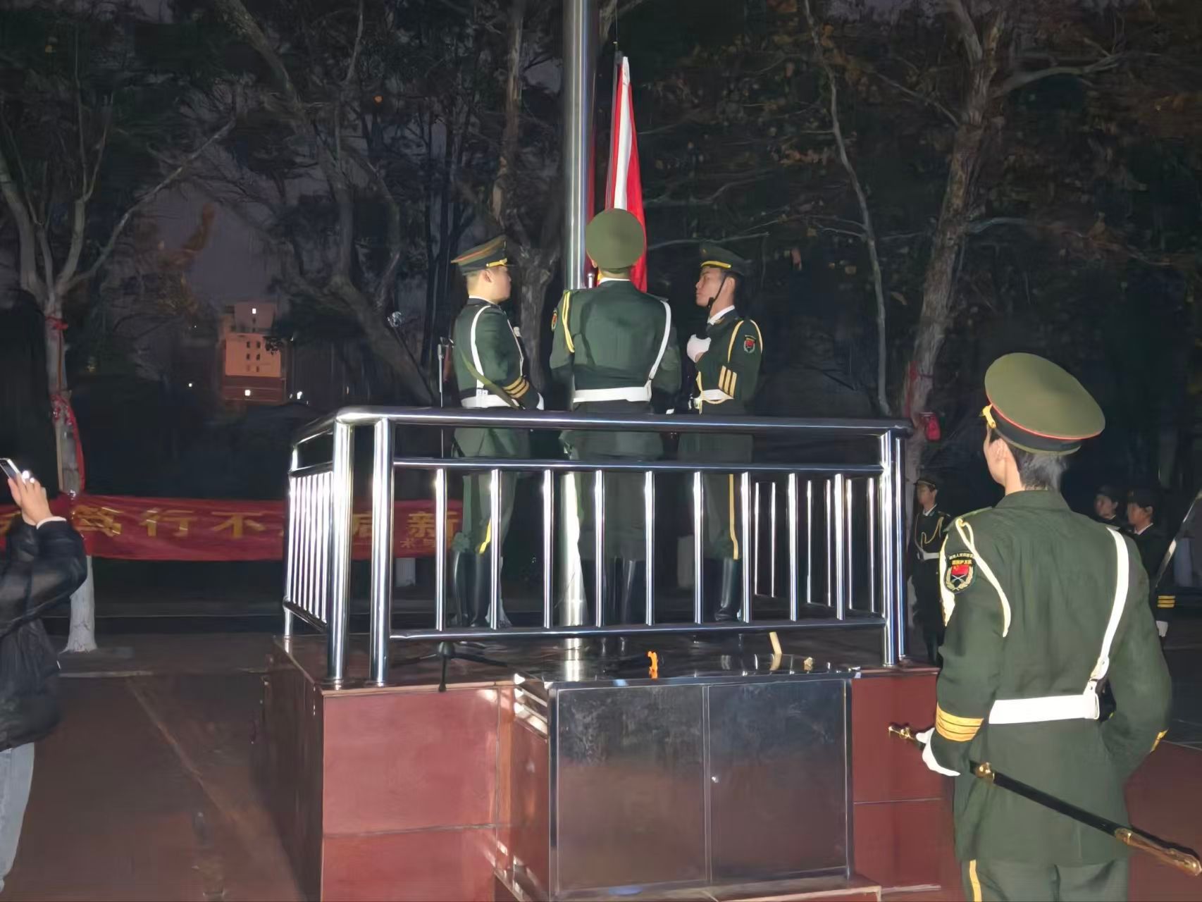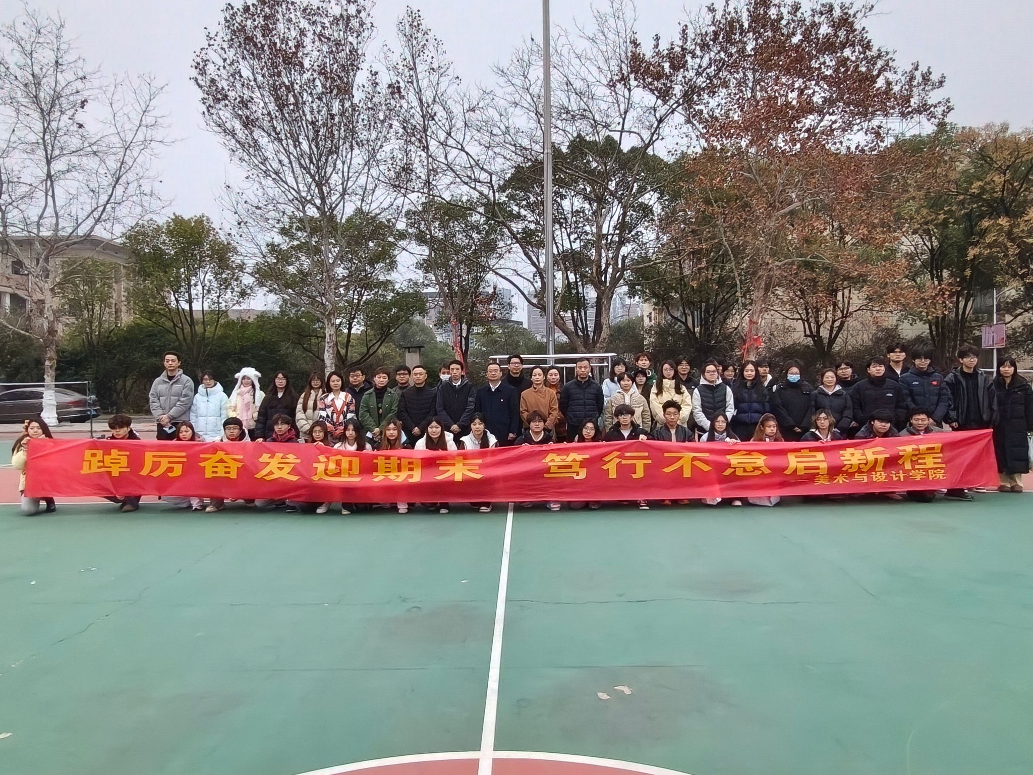 仪式于早晨7时许圆满结束,师生有序退场。本次升旗仪式通过庄严的仪式教育,不仅强化了学生的集体荣誉感与诚信备考意识,更以“踔厉奋发、笃行不怠”的精神内核为学院人才培养注入了奋进力量,为构建优良学风、培育时代新人奠定了坚实基础,在寒冬清晨为美设院学子扬起了奋斗的风帆。
