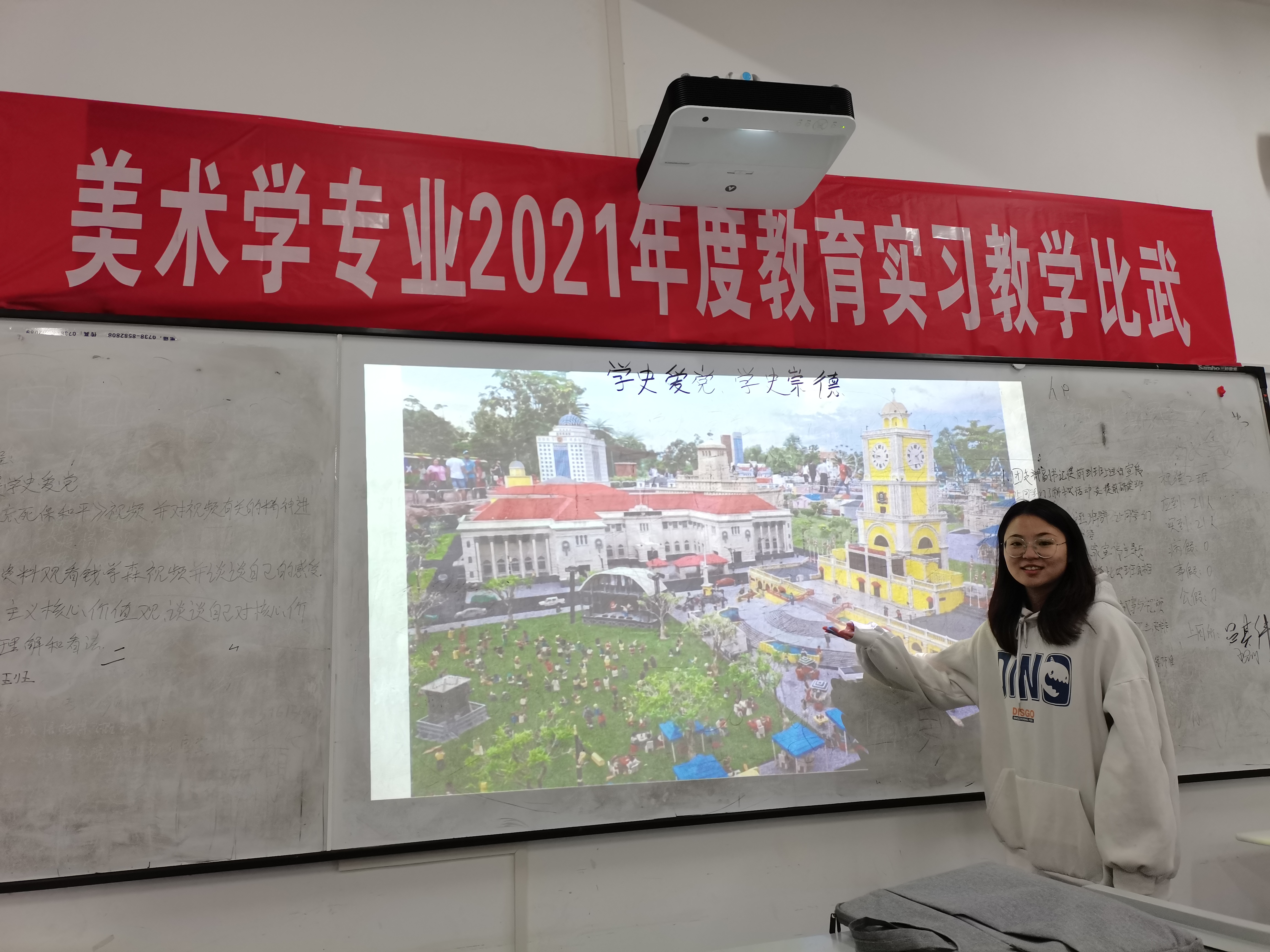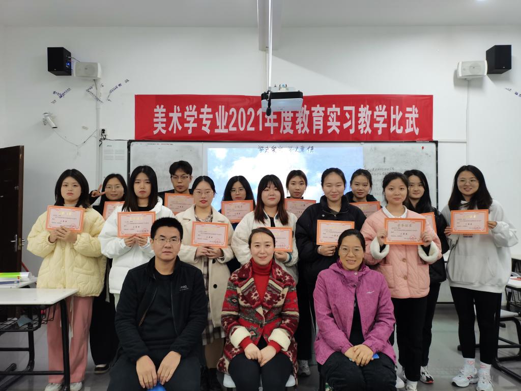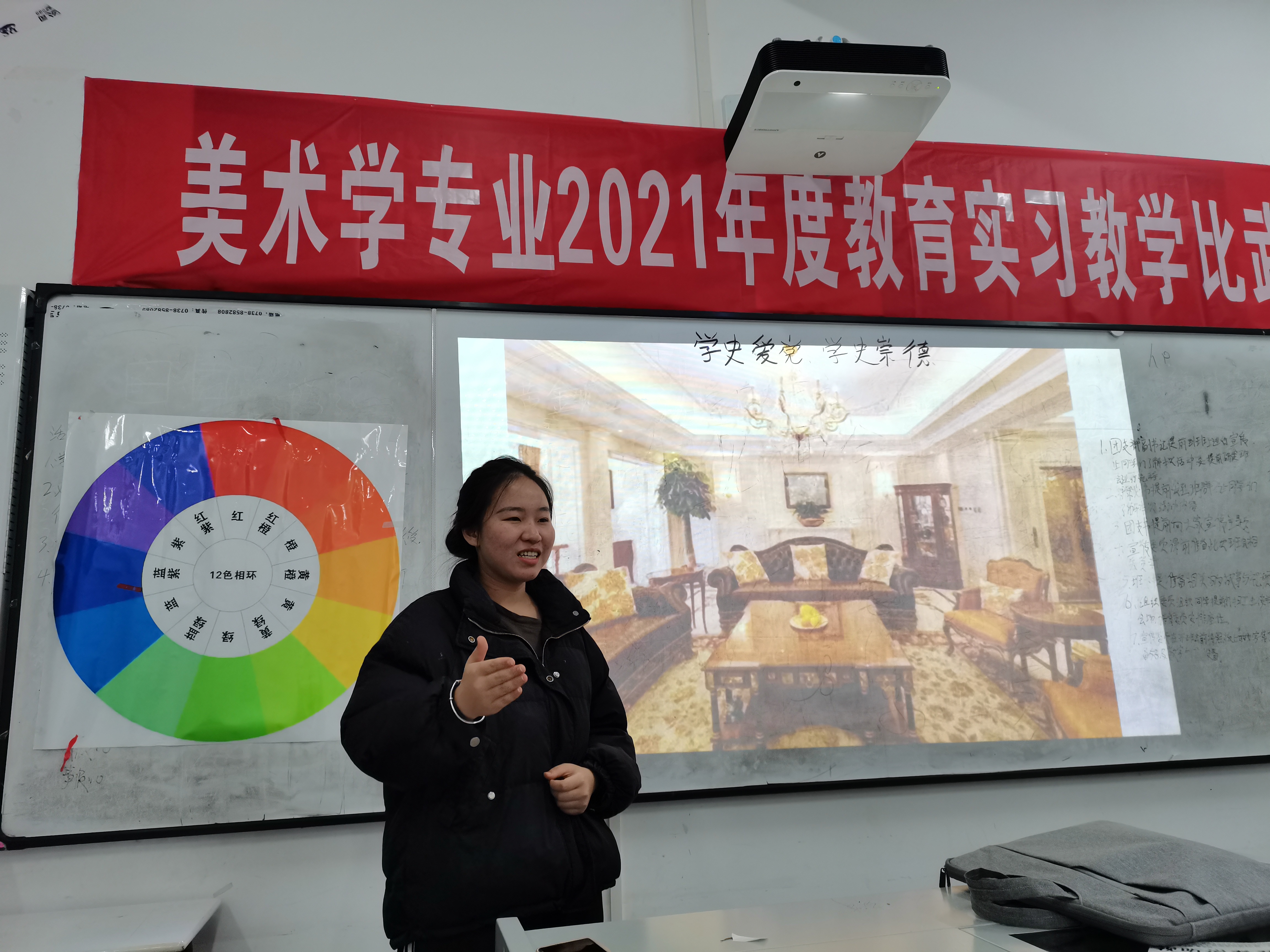 为推进实习工作,有效评估教育实习教学效果,提升实习生的课堂教学能力,12月22日下午,美术学教研室在逸夫美术楼309举行2021年度美术学专业教育实习教学比武活动。