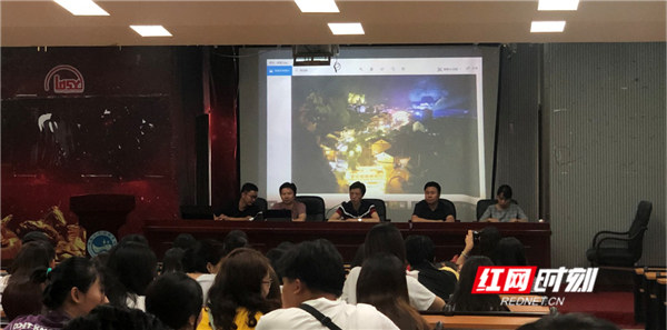 校教师发展中心主任毛攀云教授为学校师生介绍了天门乡的发展状况和目前规划前景,展示了学校为天门乡服务做出的系列实践成果,同时提出了天门乡在发展中遇到的诸多困难,与师生共同探讨天门乡在乡村产业振兴、乡村文化创造性传承等问题,希望能够提供更多宝贵方案和建议,让艺术设计真正介入乡村振兴,实现校地合作双赢。