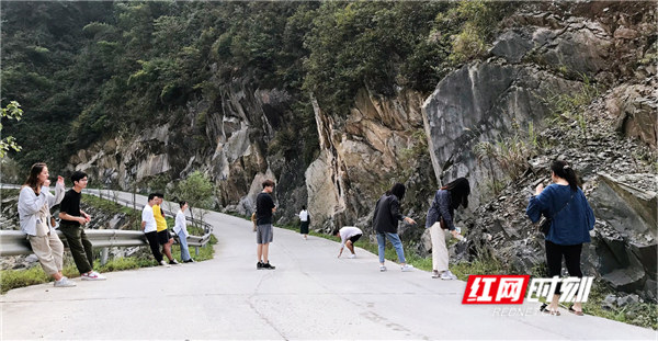 师生在新化县天门乡土坪村考察实践。