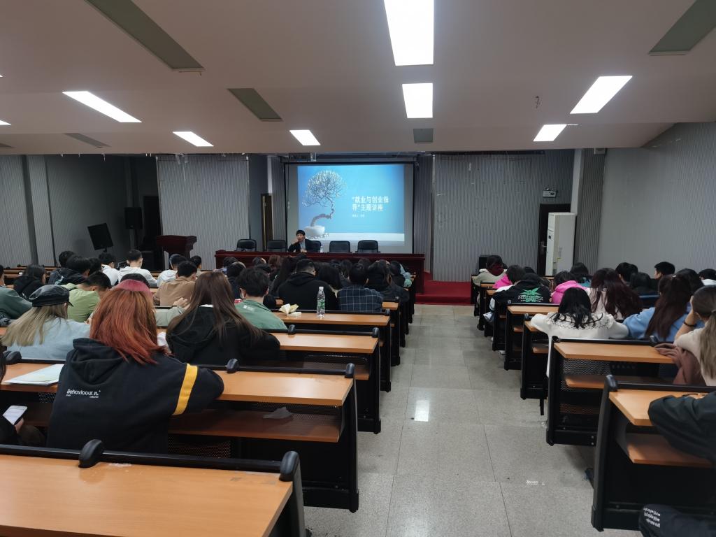 讲座开始前,辅导员杨泽文总结了美术与设计学院的毕业生近几年就业与创业状况,鼓励和支持在校大学生主动创业。