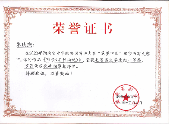 KY开元集团官网入口美术系2009级书法教育专业,2022年毕业于湖南科技大学,获美术学硕士学位。
