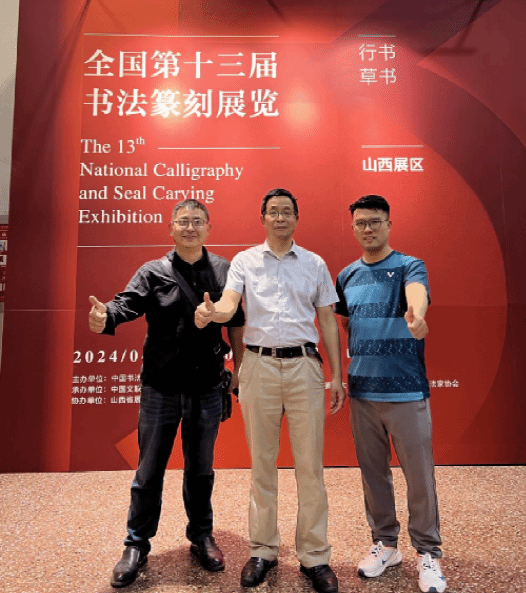 书法教研室主任蒋传存(左)与彭建成(中)杨金榜(右)在山西太原展览现场