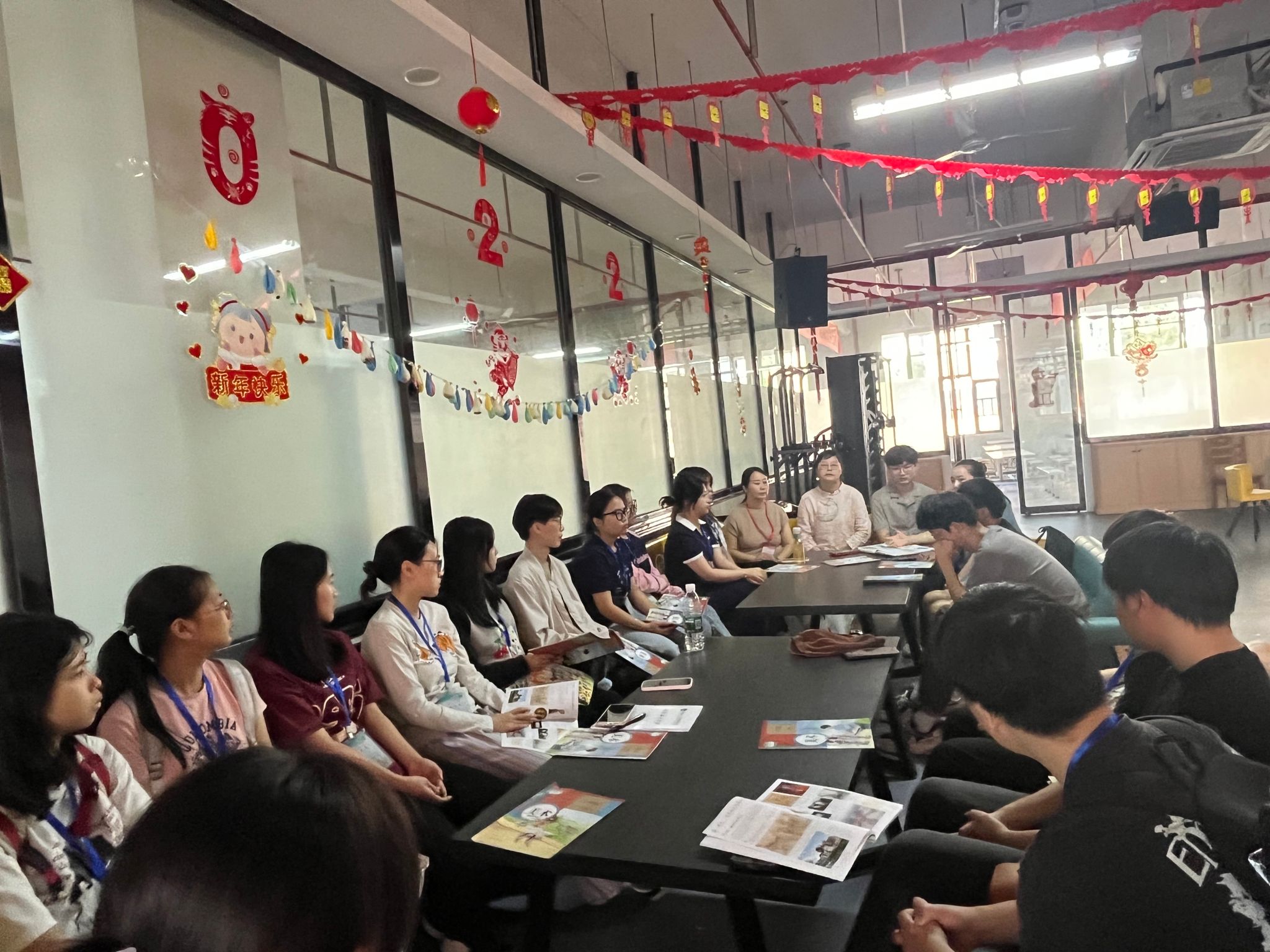 随后,美术组组长周洁老师向实习生团队介绍了他们在实习期间完成的工作任务、内容,包括安排的课次、协助艺术节的举行等。她还特别提到,学校为了让准备考研的实习老师能够有舒适的学习环境,还贴心地为他们安排了专门的自习室,助力他们的学习备考。