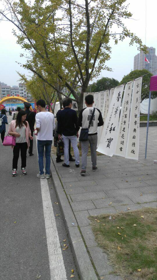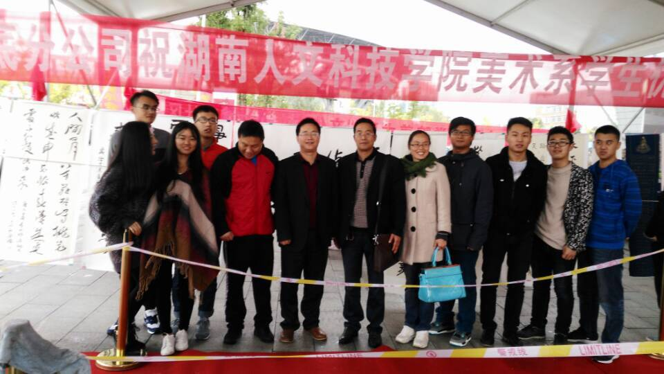 此次展览还进行了“强强联手”。娄底市首届书画艺术博览会组织方与我系书画慈善义卖活动团队进行了联手宣传与展览。我系学生党员阵前受命,积极充当了娄底市首届书画艺术博览会义务宣传的志愿者。