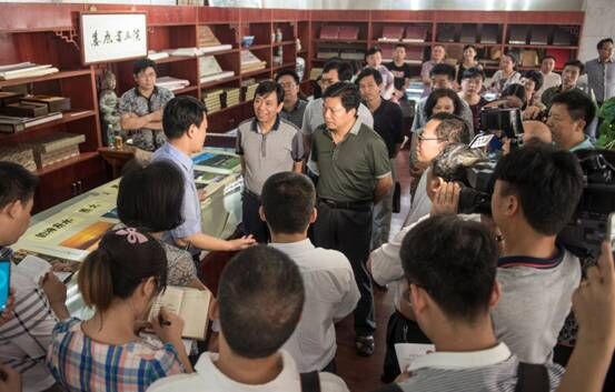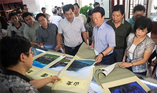娄底市委书记龚武生及其陪同成员一下车就直奔娄底书画院,仔细查看了收藏的珍贵书画作品,之后娄底书画院负责人曾颂军向龚武生等详细介绍了印制精良的娄底八景图和其它相关作品。