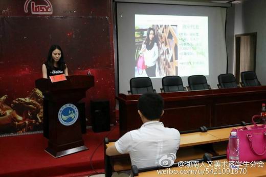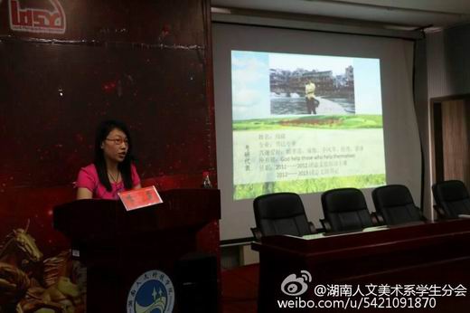 2015年5月28日晚7::30,我系在逸夫楼报告厅举行了2015届优秀毕业生经验交流会。出席本次会议的有美术系党总支书记李小林,分管学生会工作的李兰老师,11级辅导员张晶露老师,学生会、团总支主要干部,大一、大二、大三部分学生,大四毕业生代表共230多人参加了本次经验交流会。会议由李兰老师主持。