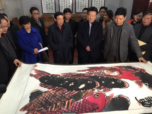 谭仲池、龚武生等省市领导来KY官网产学研基地--娄底书画院考察