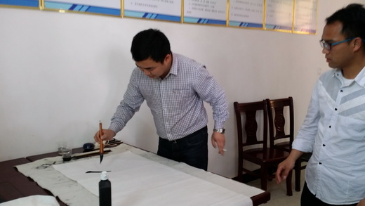 活动现场,书法家易俊和蒋传存老师把对群众的深情厚谊凝聚于笔端,精心构思,展纸泼墨,带领书法专业学生现场创作书法作品赠送给社区居民。美术系党总支(党支部)坚持开展文化下乡活动,旨在更贴近基层群众、服务基层群众、丰富基层群众文化生活,为社区文化建设尽一份力就是其内容和范畴之一。李小林书记说:“希望通过这些作品,把喜庆和欢乐带给居民,让基层群众也能够享受到文化艺术带来的乐趣,激发他们对美好事物、高雅艺术的追求。”