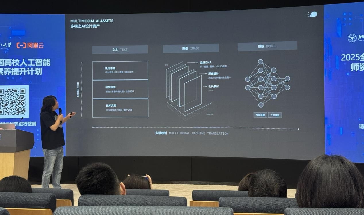 5月24日至25日的课程转至阿里巴巴云谷园区,在沉浸式场景中继续展开。阿里云设计专家胡峻、WaytoAGI开源社区代表郭佰楠等专家围绕AI辅助设计、AIGC行业实践、教学智能体agent构建等主题进行了深入剖析与案例解析。最终,阿里云专家王圣宏主持AIGC项目实训环节,全面引导教师开展“AI设计工具链”项目实训,带领教师完成从理论到实践的闭环学习,并颁发结业认证。