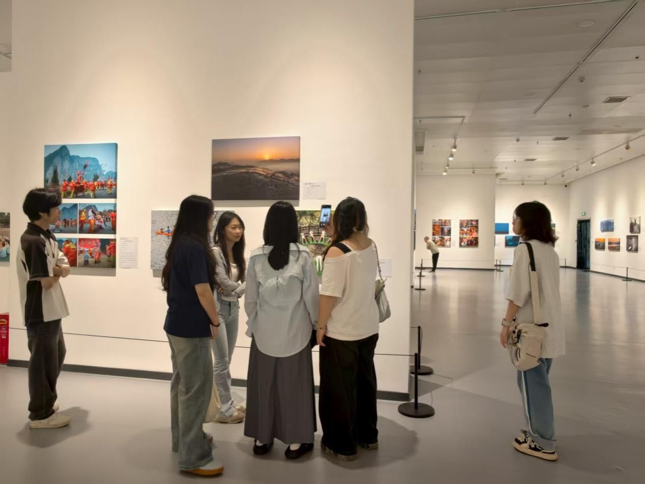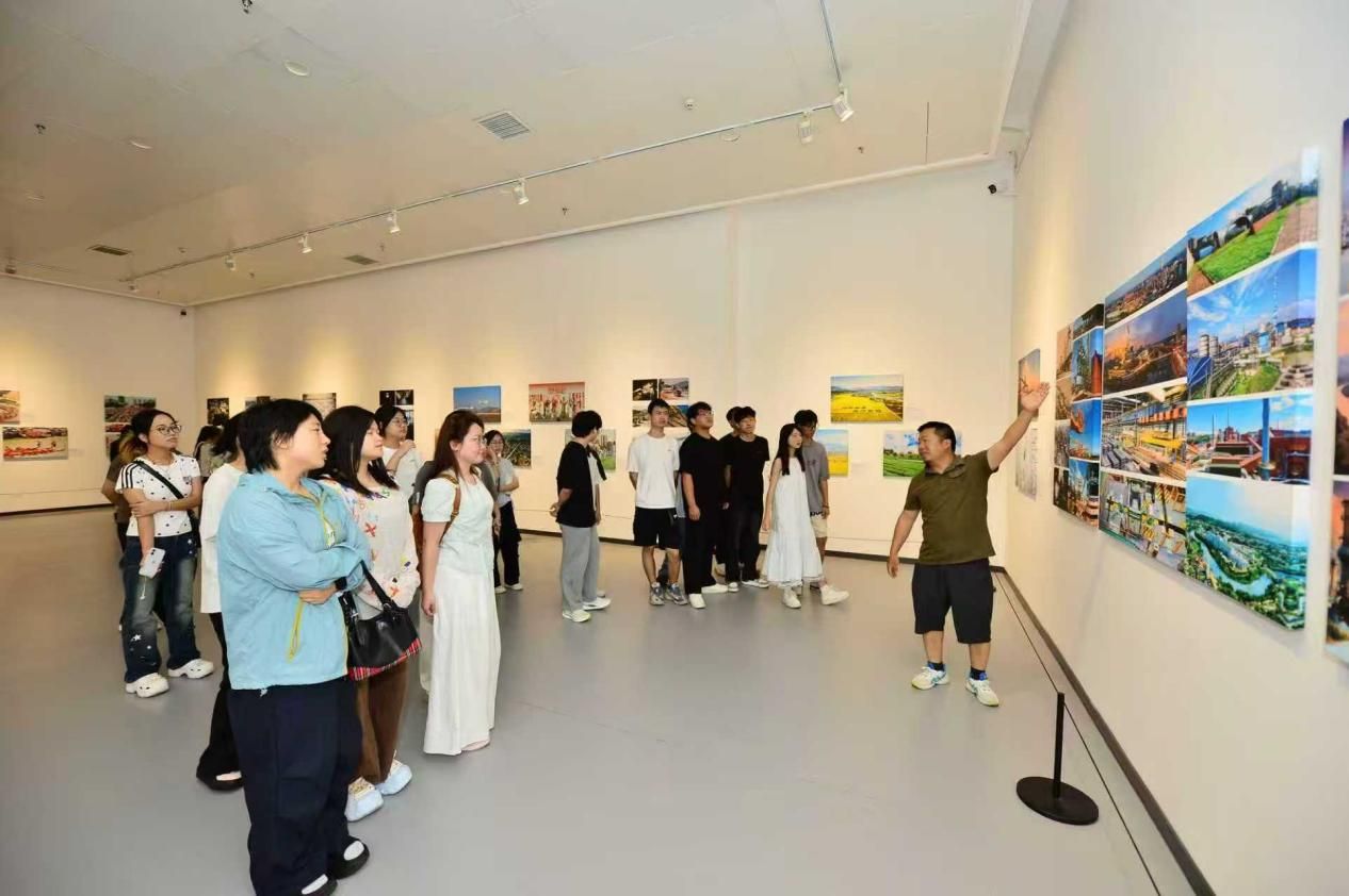 展览现场,同学们被一幅幅精彩的摄影作品深深吸引。作品题材广泛,涵盖了自然风光、人文纪实、城市风貌等多个领域,从不同角度展现了娄底的独特魅力和时代变迁。在杨智老师的引导下,同学们认真欣赏每一幅作品,仔细品味作品中的构图、光影、色彩运用以及背后所蕴含的情感与故事,并积极与老师交流互动,提出自己的见解和疑问。杨智老师结合数字媒体艺术专业的特点,深入浅出地为同学们讲解摄影艺术的表现手法和创作思路,以及如何将摄影艺术与数字媒体技术相结合,为同学们带来了一场丰富的艺术盛宴。