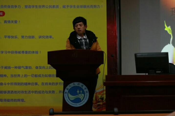 其次,文建站办公室主任赵宇斌通过ppt的形式介绍了大学宿舍安全问题、安全措施及寝室文化建设。提到了晚归的处罚办法,并对我系近期举报的“文明寝室评比与寝室设计大赛”活动做出了详尽的解释。