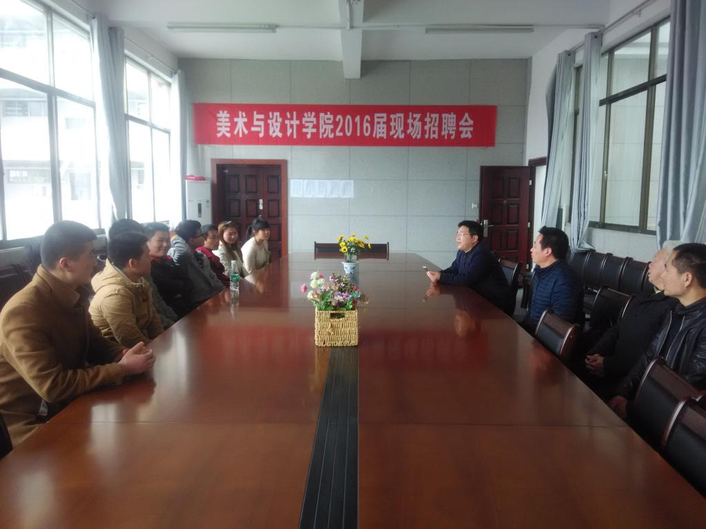 下午,美术与设计学院2016届毕业生专场招聘会在逸夫楼二楼会议室举行。此次招聘会由KY官网招生就业领导小组负责组织,李小林书记、就业专干到现场主持招聘工作。李小林书记对此次招聘公司作了简单介绍,并与招聘方讨论了一些有关毕业生就业的具体事宜,并对其来KY官网举行招聘会表示感谢。