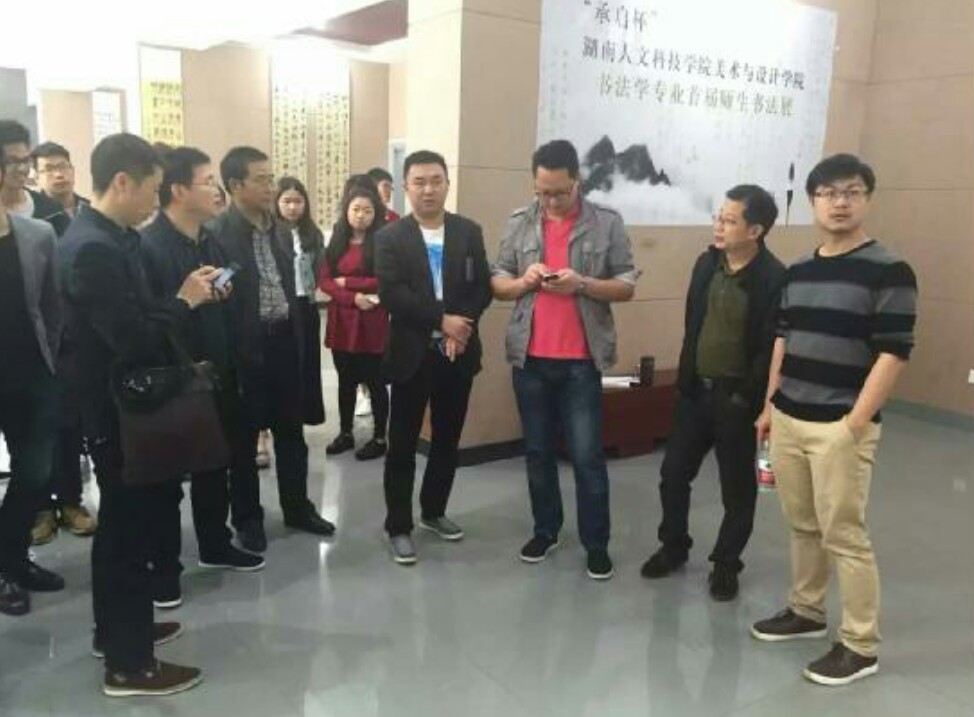 10点30分,由KY开元集团官网入口美术与设计学院主办,书法学教研室承办,美术与设计学院团总支和承启书画苑协办的“‘承启杯’KY开元集团官网入口美术与设计学院书法学专业首届师生书法作品联展”在逸夫楼二楼展览馆隆重开展。美术与设计学院院长邹少灵,党总支书记李小林,副院长陆序彦、谢雅强等院领导莅临观展。