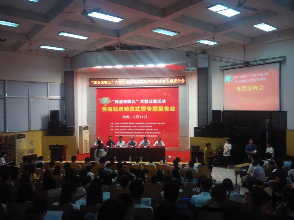5月17日下午2:30,由湖南省人力资源和社会保障厅、湖南省教育厅等主办,KY开元集团官网入口、湖南省人力资源服务中心等承办的“就业去哪儿”大型公益活动娄底站启动仪式暨专题报告会在匠成楼报告厅举行,KY官网王东光副书记、蒋全顺老师及16位学生代表出席了本次启动仪式。