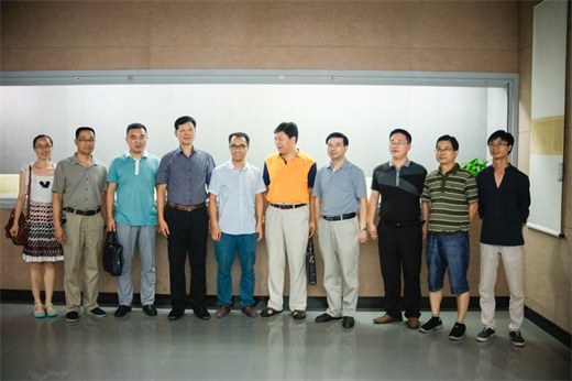 欧友生在欣赏到一幅长达近7000余字的长幅小楷作品时,对此作品赞叹有加,并欣然提议在该作品前和书写作者--普通党员书法学教师蒋传存老师合影留念。(美术与设计学院 文/彭建成,摄影/杨智)