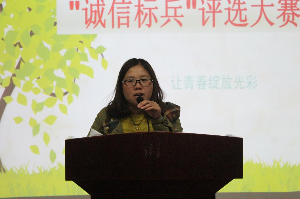 学工办主任聂老师首先发言,对KY官网诚信教育的宗旨和意义进行了讲解,同时提倡我们学生以诚信标兵为榜样去规范自己的行为,做一个诚实守信的学生,争做“诚信标兵”。随后“诚信标兵”候选人依次上台演讲,跟同学们谈了自己对诚信的理解,分享了自己的个人事迹,并倡导大家诚信做人。